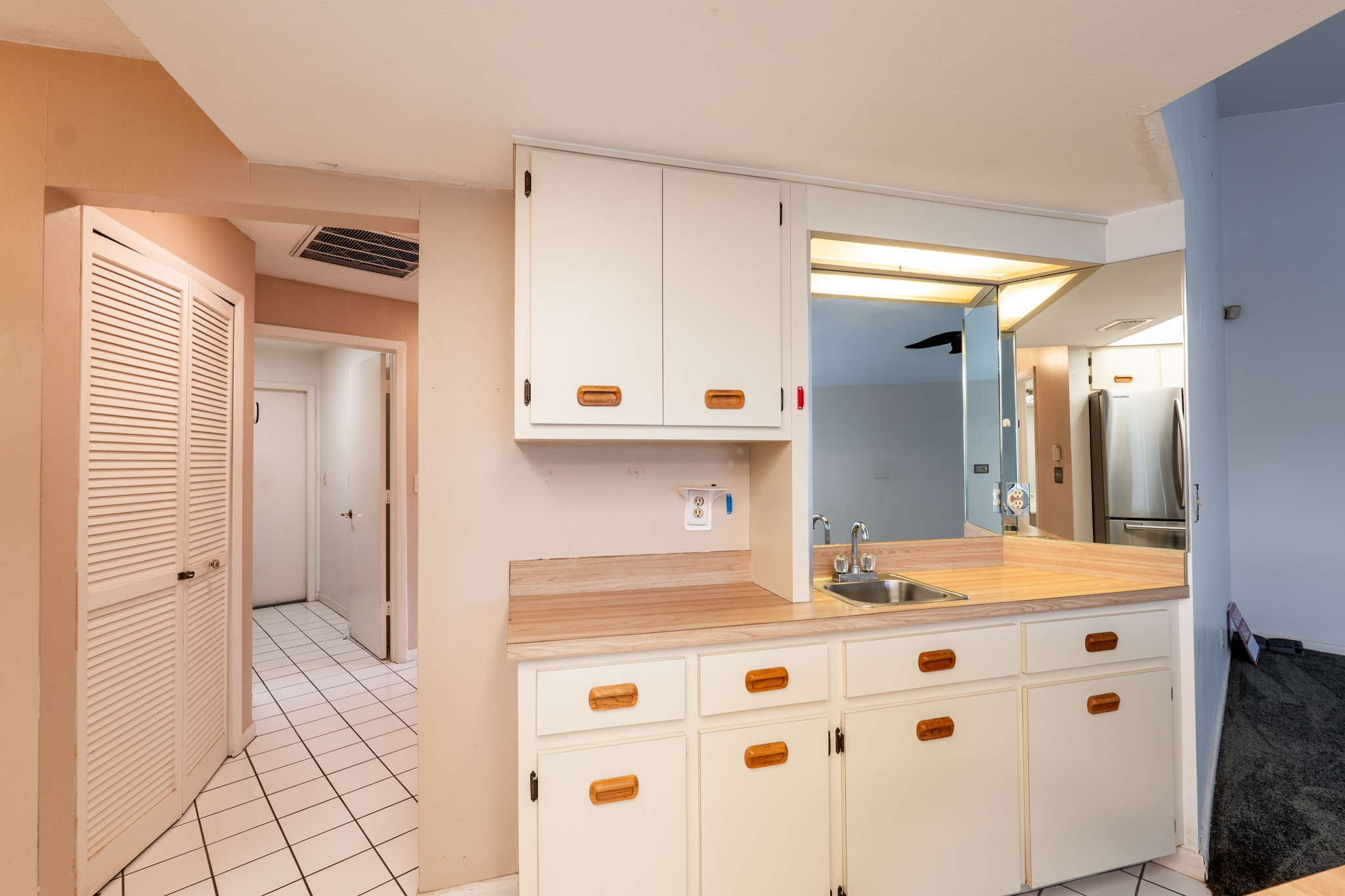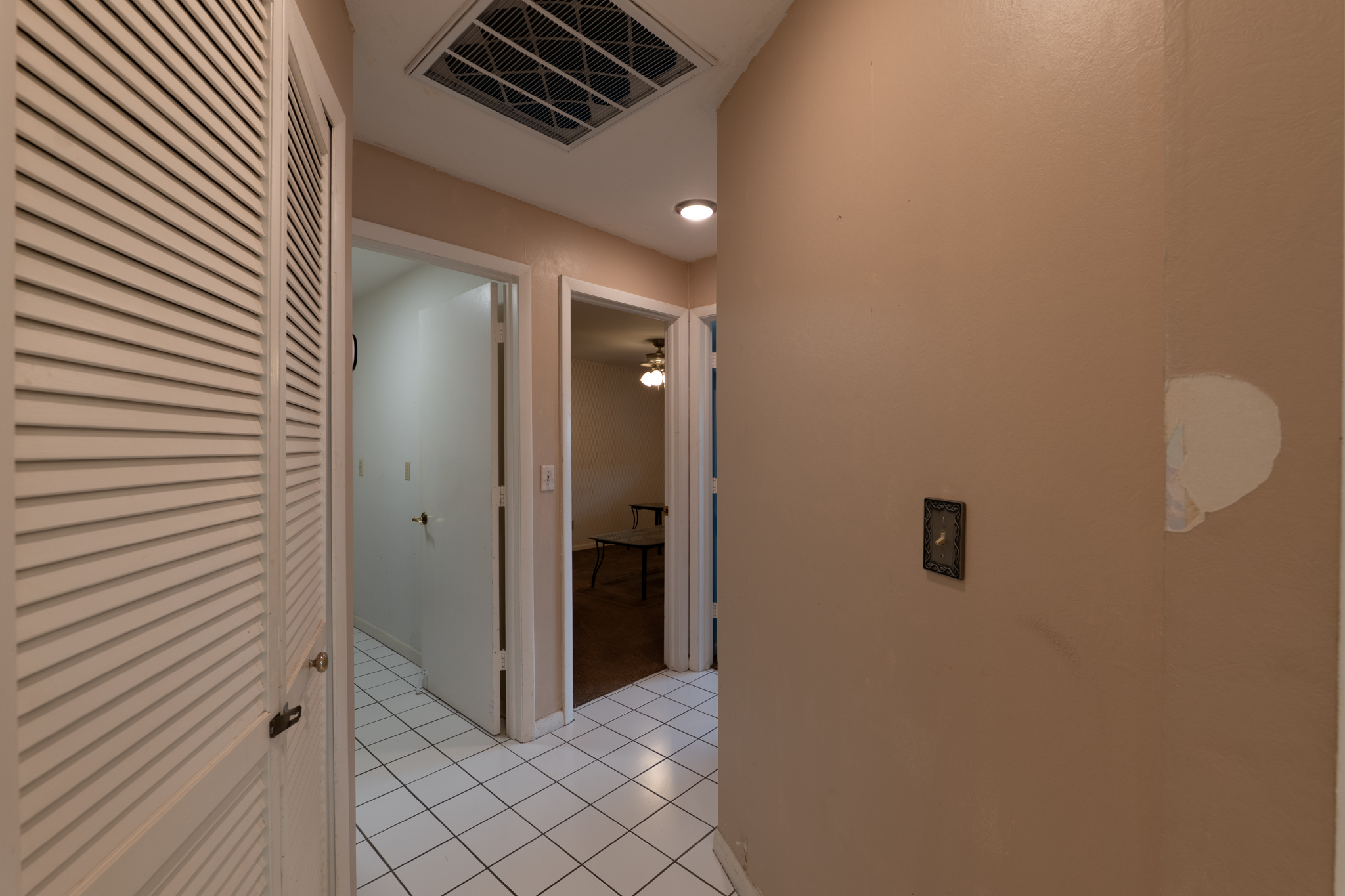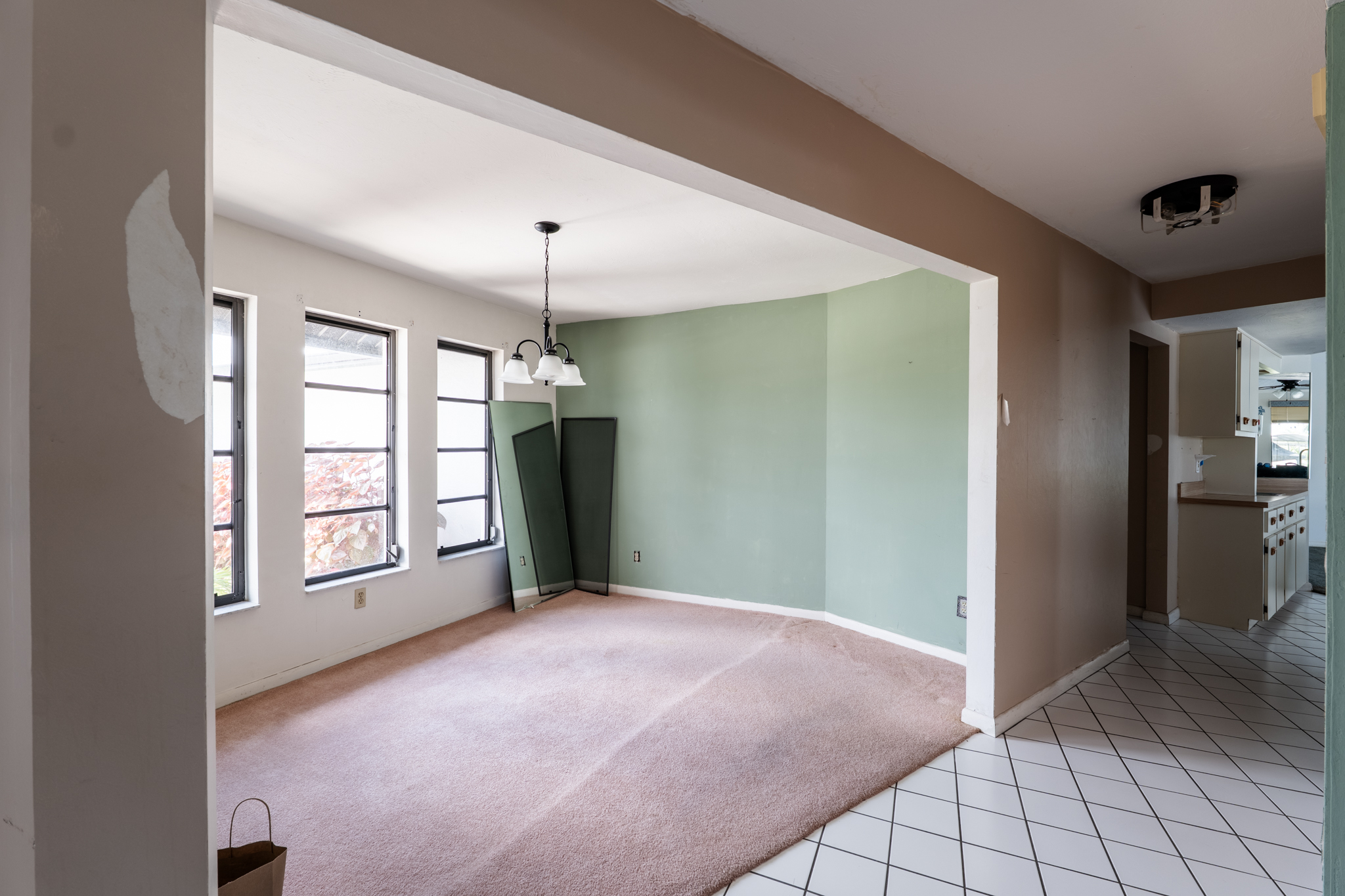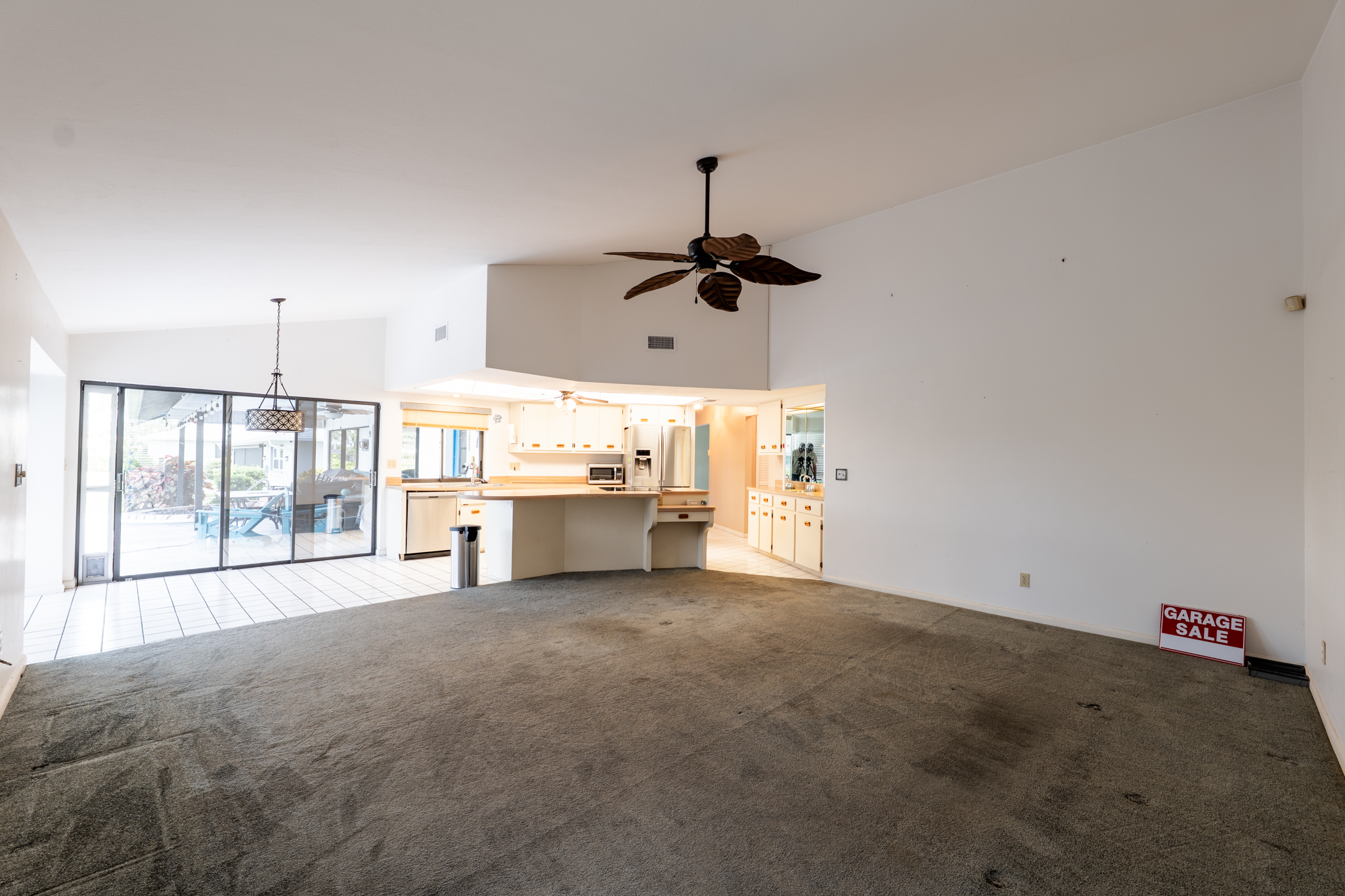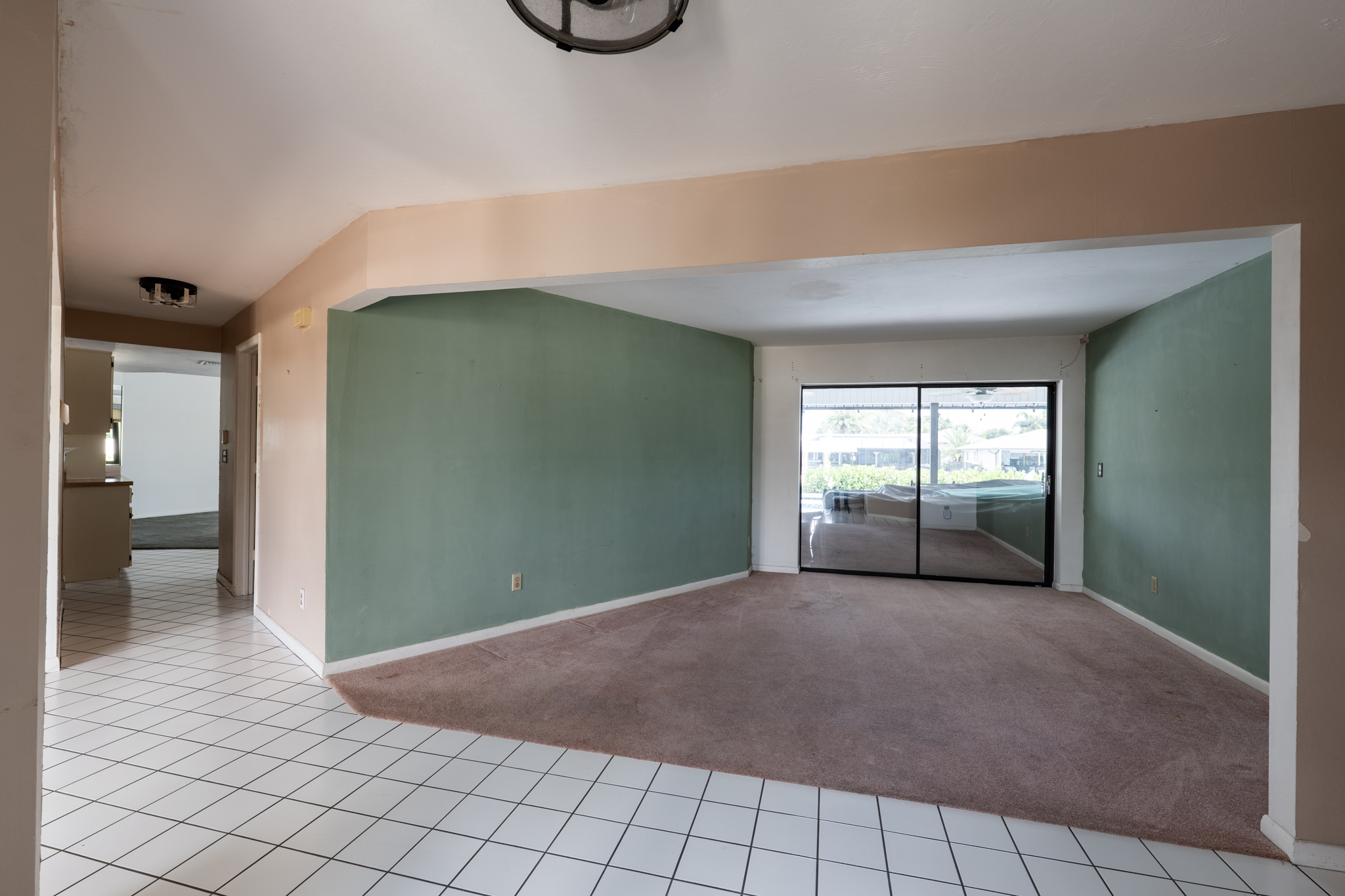 This 1985 home, located in Cape Coral’s Yacht Club area, featured unusual angled walls throughout the interior, including the front entry wall, creating what the owners called the “Fun House” effect. Although the remodel was not flood related, FEMA regulations limited how much of the structure could be altered, so the master bedroom and bath were excluded from this phase.
