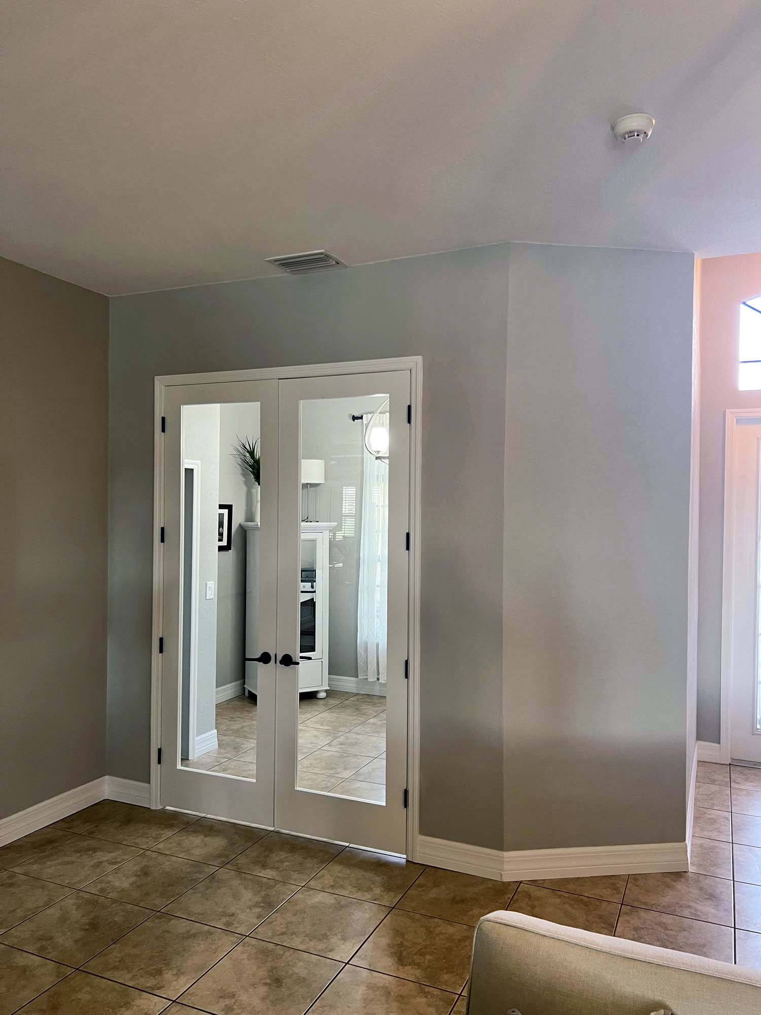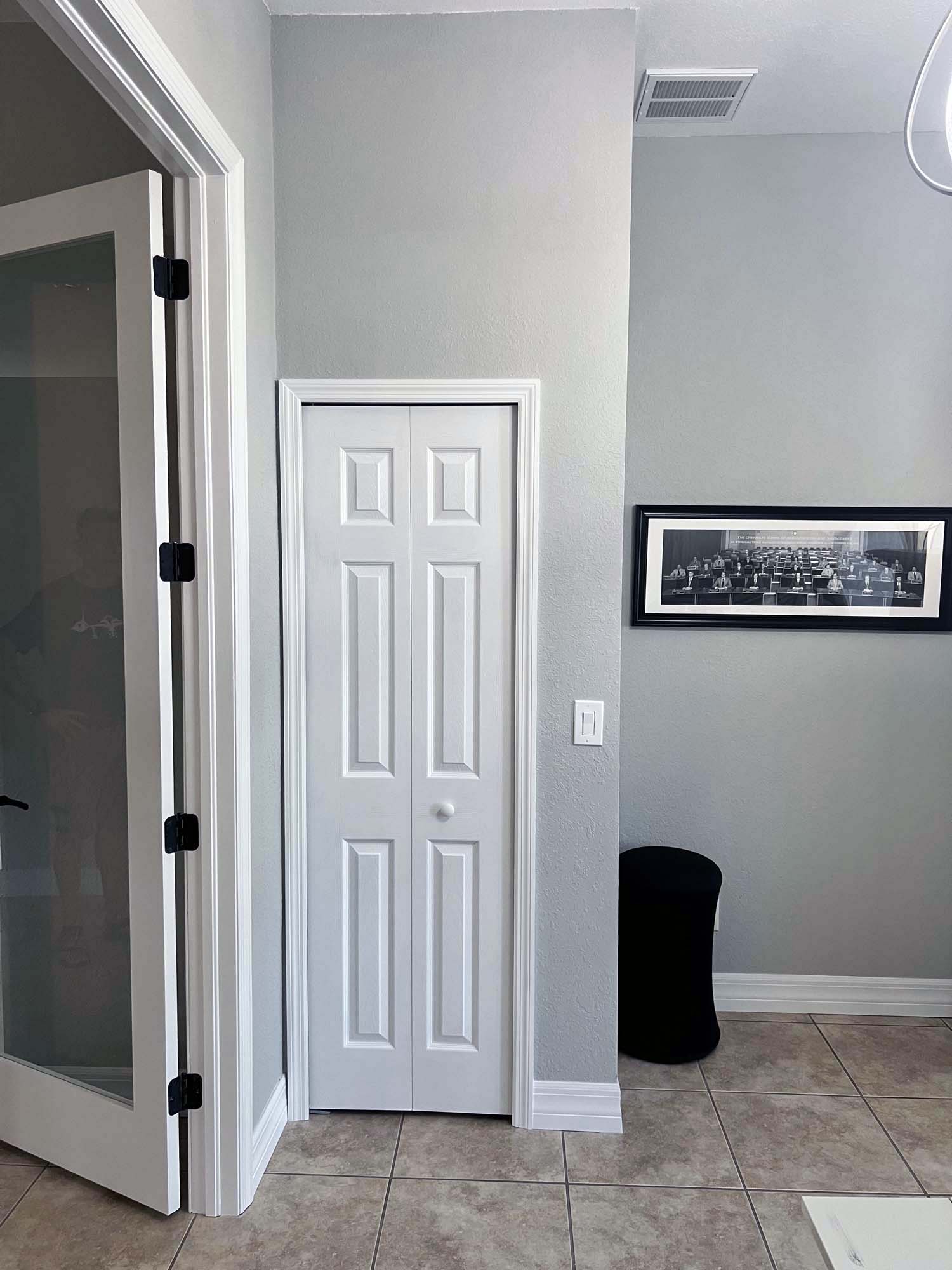 I converted this dining room into a bedroom with a closet and glass doors to allow the light to flow into the living room.