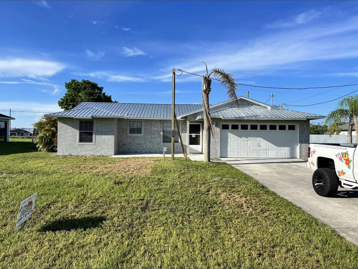 Transformed a wood framed wood-sided home to stucco with seafoam green and 4-inch bright white bands wrapping all doors and windows, giving it a nice Key West look. Rather than replace the soffit and fascia, it was completely repaired and sprayed bright white with direct-to-metal paint to last many years.