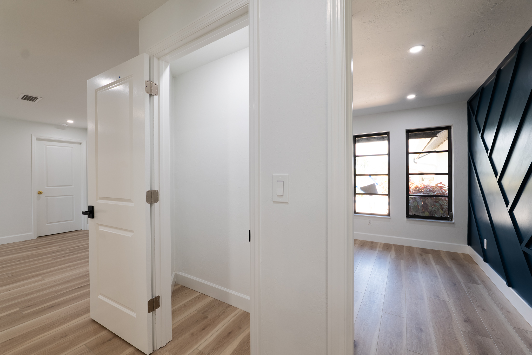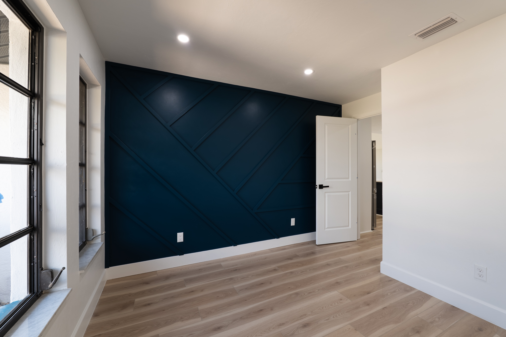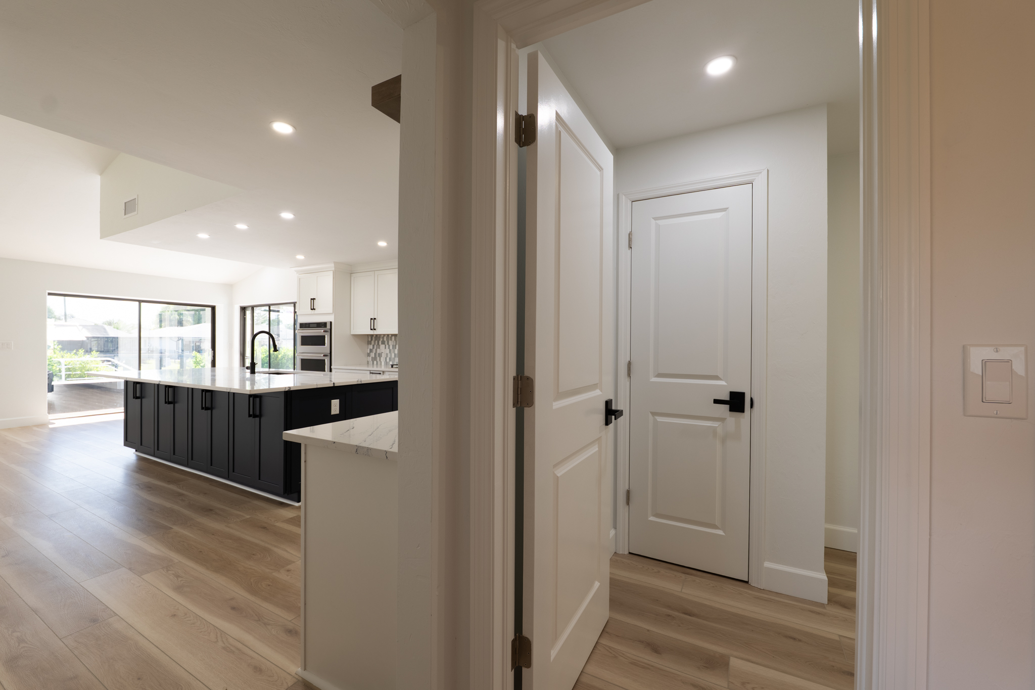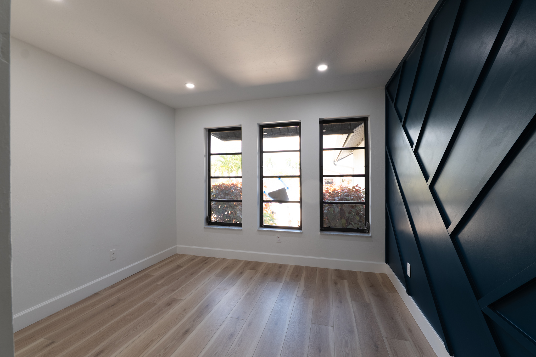 Other highlights include an extra-large shampoo niche and backlit mirror in the bathroom, a custom accent wall in the new office (which can also serve as a fourth bedroom), and a raised kitchen ceiling with over 40 recessed LED lights. The laundry room was expanded and now includes a vanity pre-piped for a future utility sink.