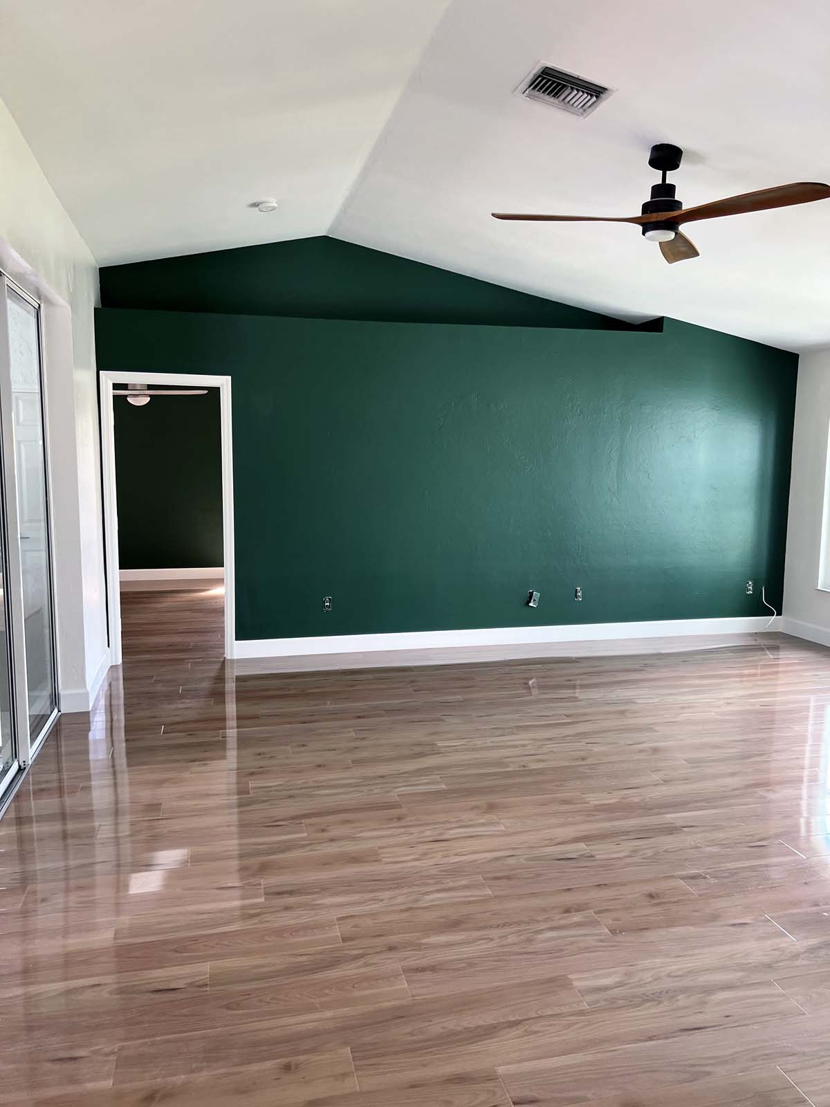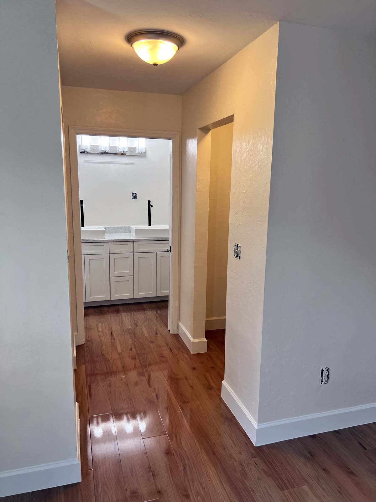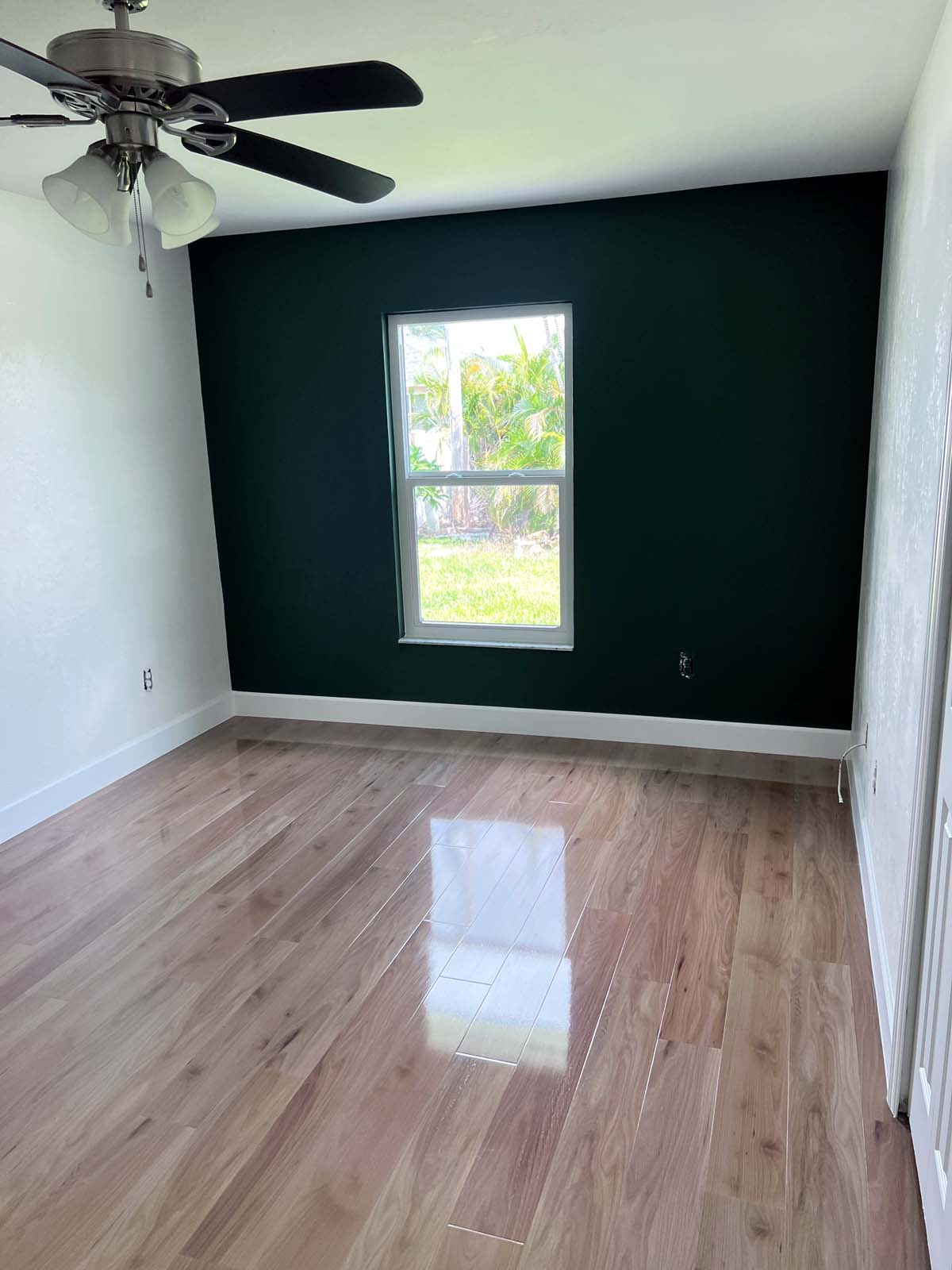 In other rooms and throughout we installed taller 5-1/4″ baseboards, modern high-end wood-like LVP flooring, and created accent walls.
