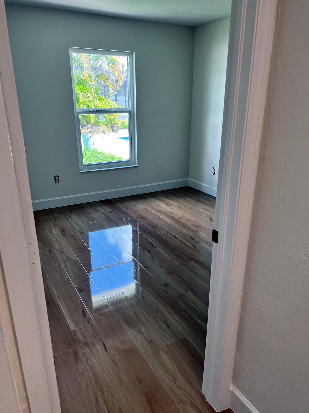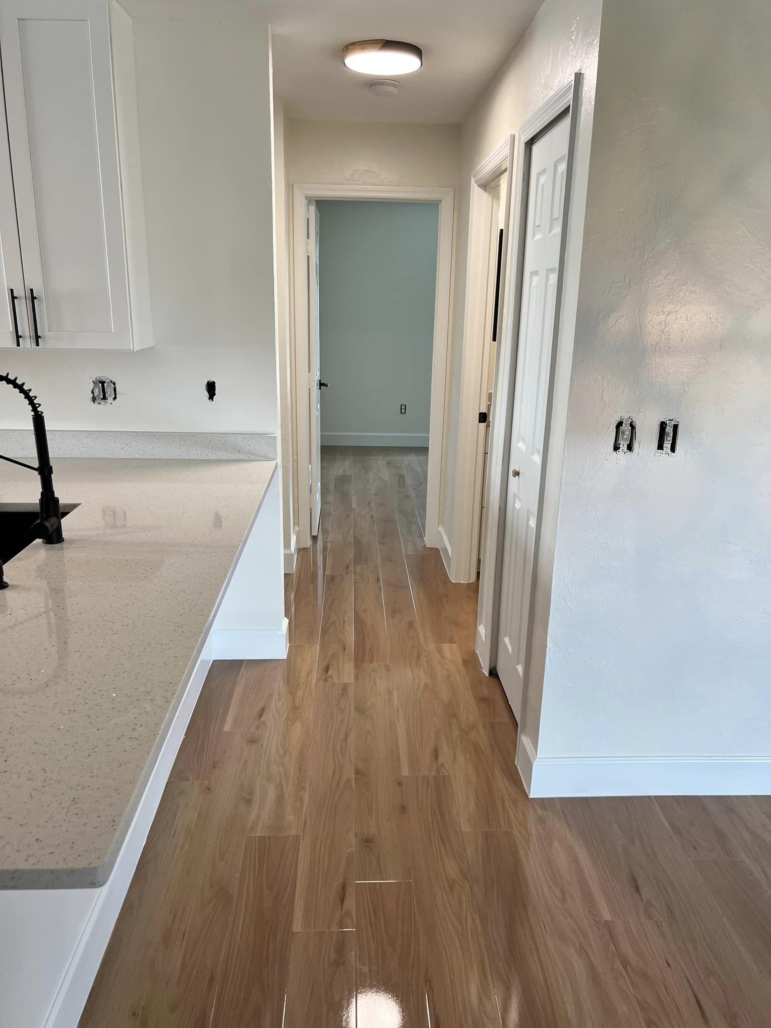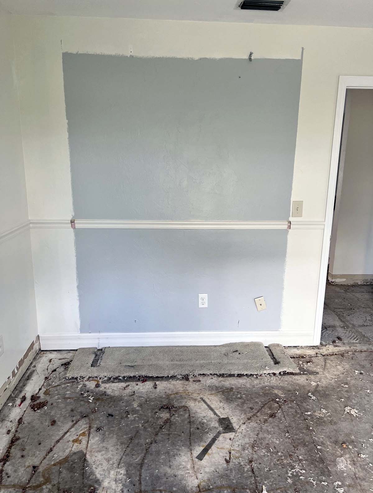 In other rooms and throughout we installed taller 5-1/4″ baseboards, modern high-end wood-like LVP flooring, and created accent walls.