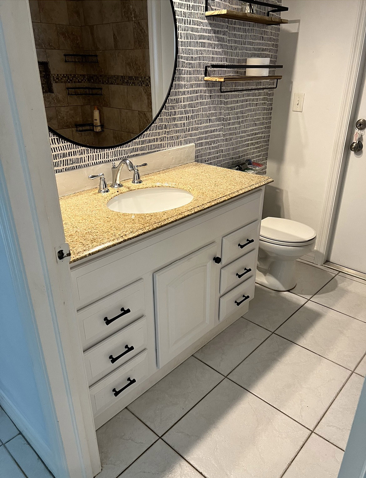 During the remodel, we discovered water underneath the old tile, which led us to uncover that the previous owner had not disclosed a history of water damage to the house. Despite this unexpected challenge, we managed to complete the entire project in approximately 60 days, from start to finish.